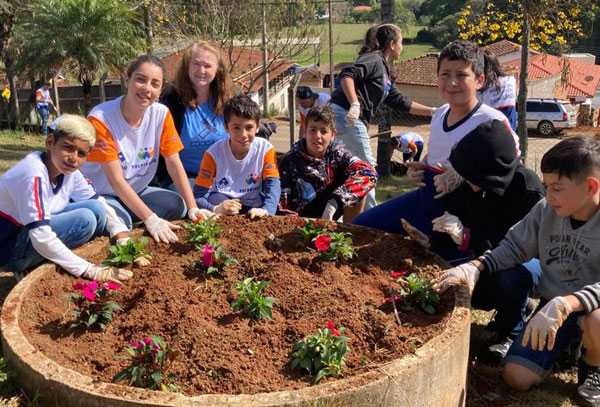 Poços de Caldas, MG – Os 73 alunos da Escola Municipal de Ensino Básico (Emeb) José Álvares Canha, de Divinolândia-SP foram os maiores beneficiados com mais uma ação comunitária dos voluntários da Alcoa. Durante toda a manhã do dia 23 de setembro, cerca de 40 voluntários, entre colaboradores da Alcoa e seus familiares e da escola, além de parceiros, promoveram a revitalização da entrada da escola, palestras sobre Meio Ambiente e Álcool e outras Drogas, plantio de sementes, flores e árvores e atividades lúdicas e esportivas para os alunos do Ensino Infantil e Fundamental 1 e 2.