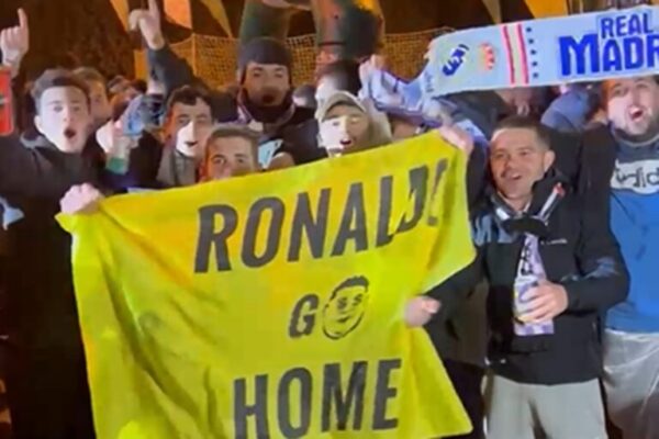 Apesar do frio de 7º C noturna espanhola, aos gritos de “Ronaldo, saia agora”, a torcida compareceu em peso utilizando coletes e bandeiras amarelas que pediam a saída do brasileiro da gestão do grupo.