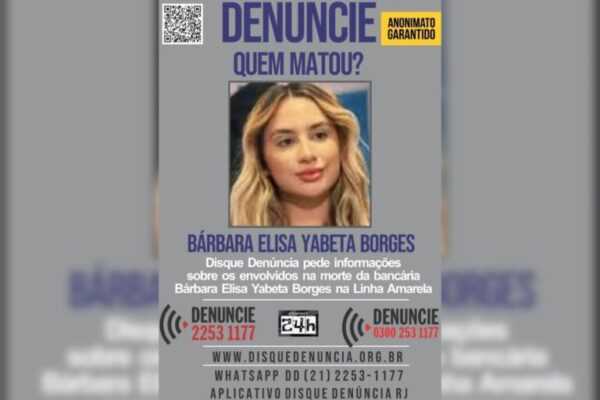 O Disque Denúncia do Estado do Rio de Janeiro informou, na tarde deste sábado (1º/11), um cartaz para amparar nas investigações da morte de Bárbara Elisa Yabeta Borges, de 28 anos. A jovem morreu nesta sexta-feira (31/10) depois de ser baleada na cabeça enquanto estava em um carro de App que passava através da Linha Amarela, na zona norte do Rio.